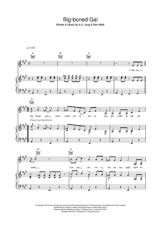 Digital Sheet Music for Big-boned Gal by K.D. Lang scored for Piano/Vocal/Chords; id:376484