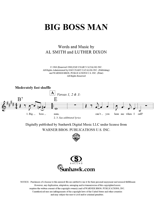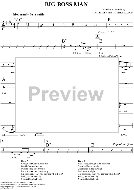 Digital Sheet Music for Big Boss Man by Elvis Presley, Luther Dixon, Al Smith scored for Lead Sheet; id:290798