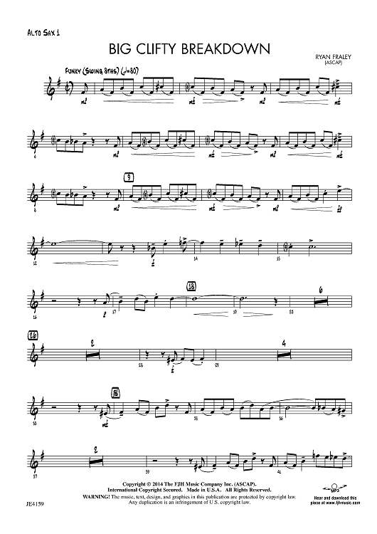 Digital Sheet Music for Big Clifty Breakdown - Alto Sax 1 by Ryan Fraley scored for Jazz Ensemble; id:446731