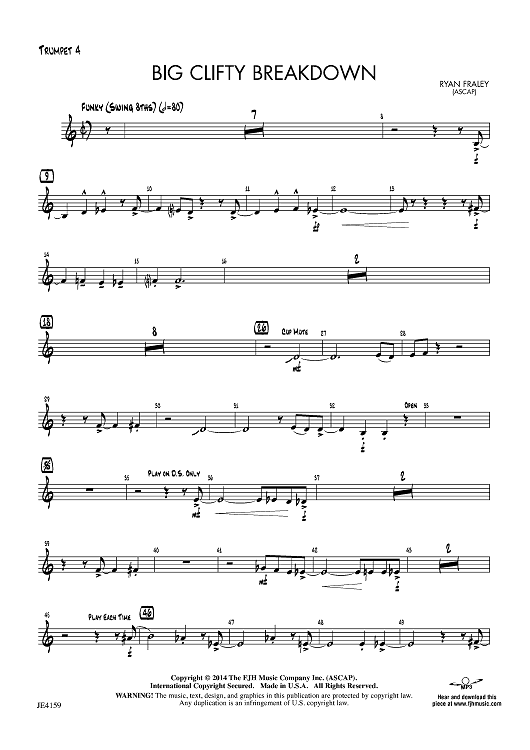 Digital Sheet Music for Big Clifty Breakdown - Trumpet 4 (opt.) by Ryan Fraley scored for Jazz Ensemble; id:446739