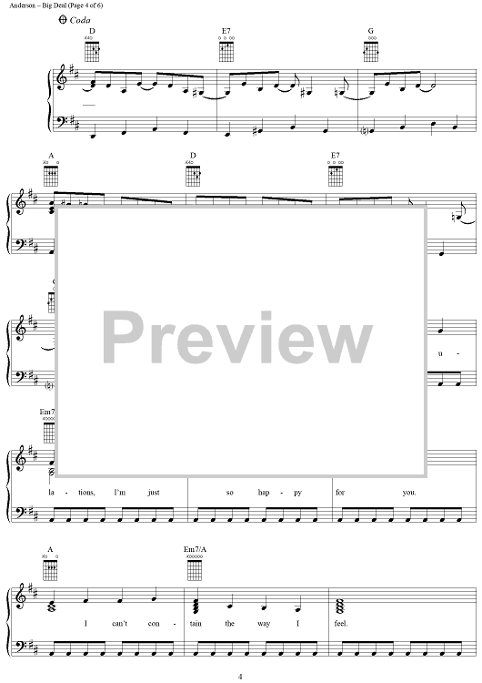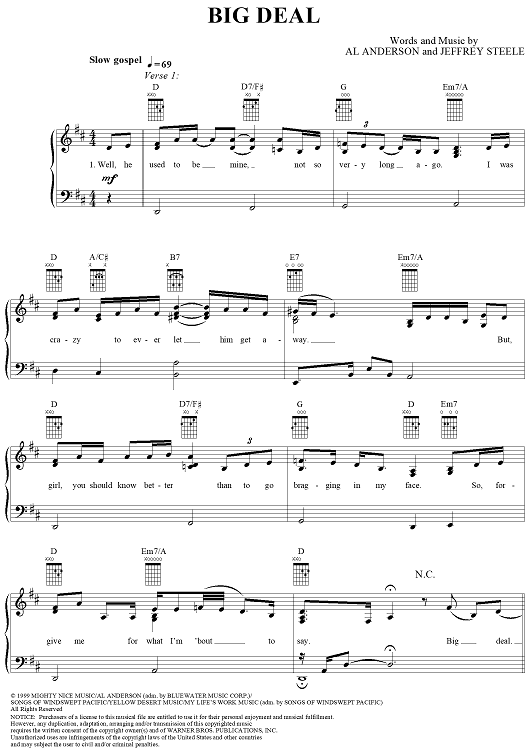 Digital Sheet Music for Big Deal by LeAnn Rimes, Jeffrey Steele, Al Anderson scored for Piano/Vocal/Chords; id:131759