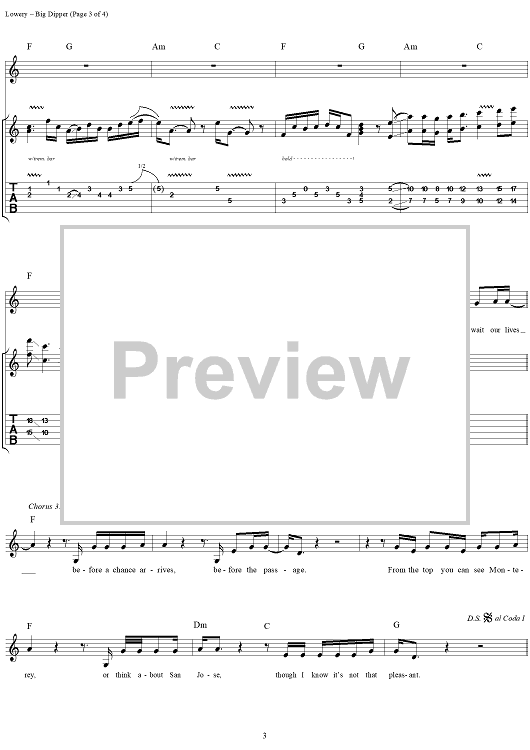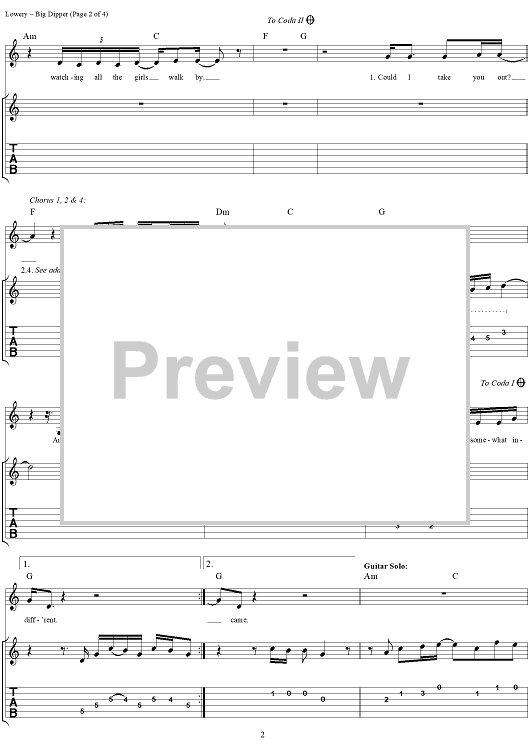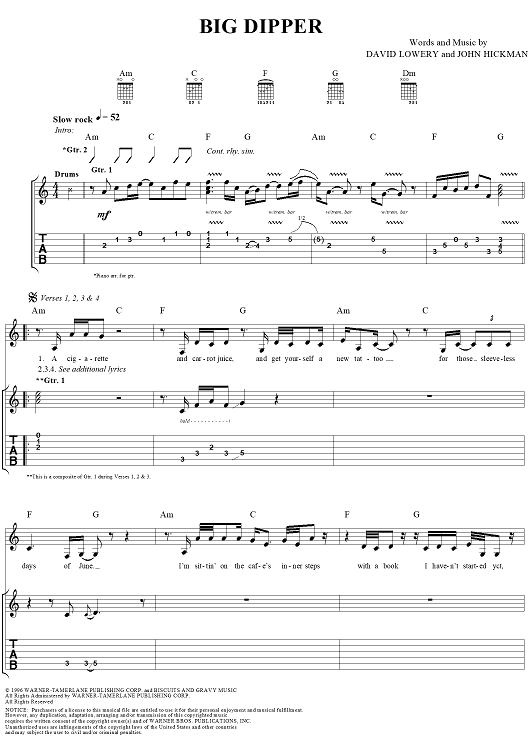 Digital Sheet Music for Big Dipper by John Hickman, David Lowery, Cracker scored for Guitar Tab/Vocal; id:118911