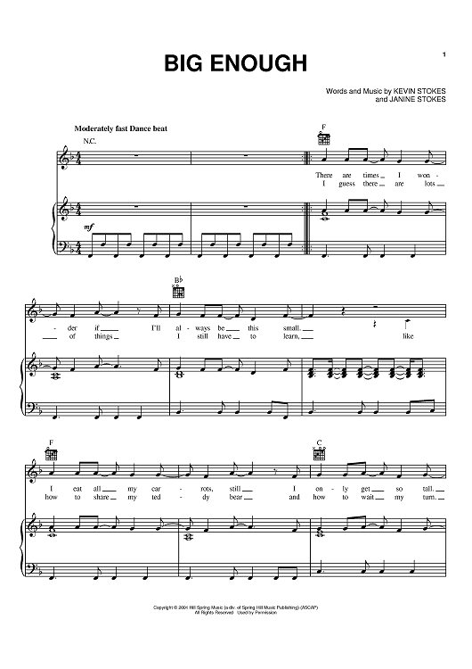 Digital Sheet Music for Big Enough by Janine Stokes, Kevin Stokes scored for Piano/Vocal/Chords; id:373732