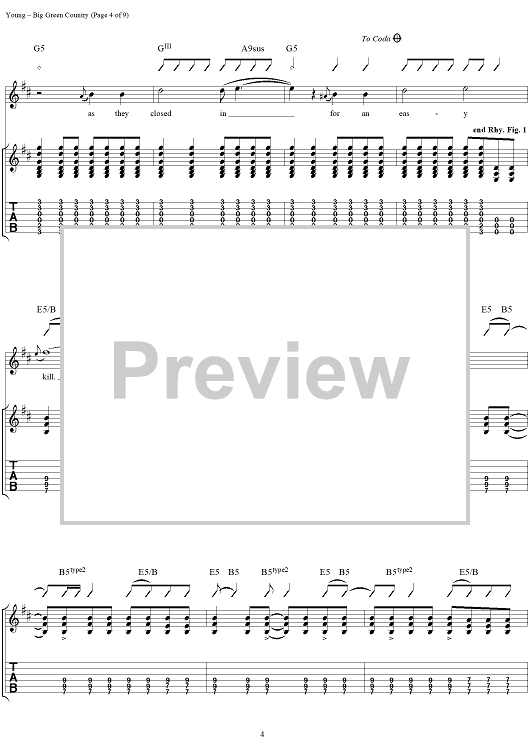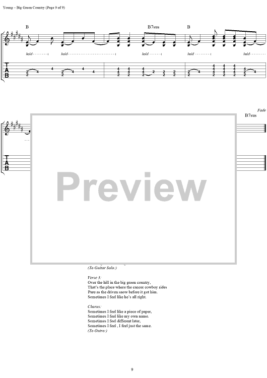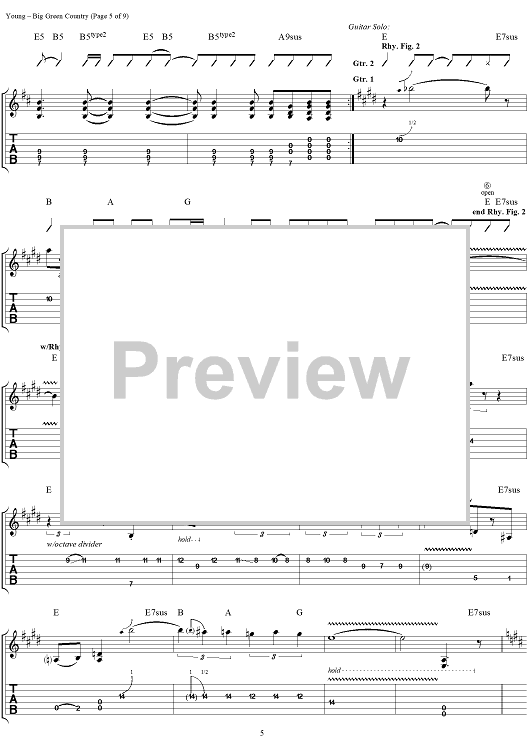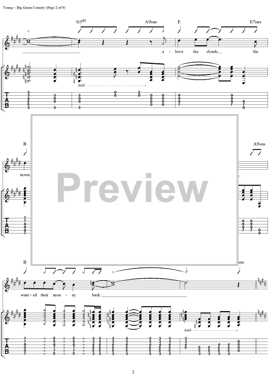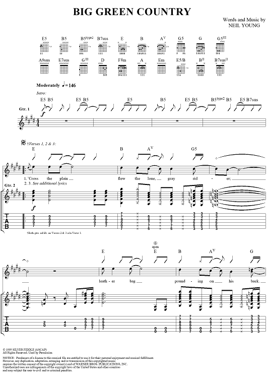 "Big Green Country" Sheet Music by Neil Young