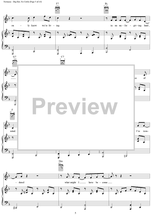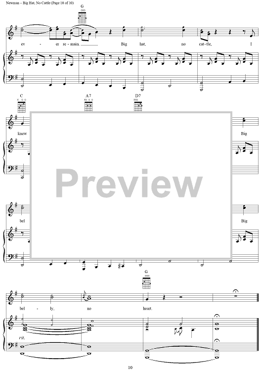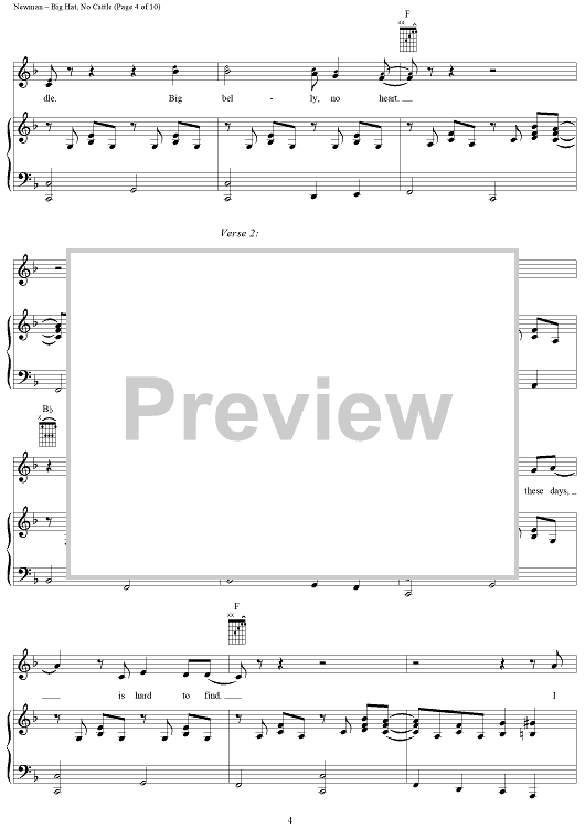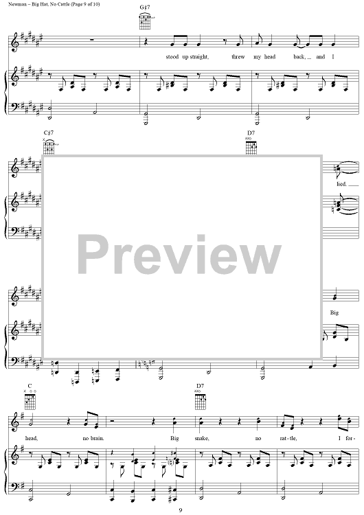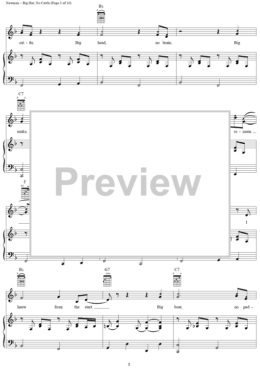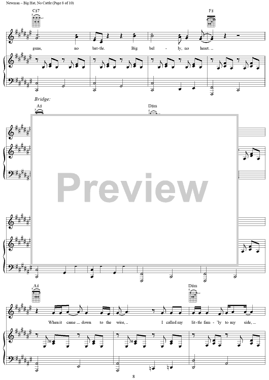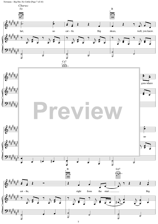 Digital Sheet Music for Big Hat, No Cattle by Randy Newman scored for Piano/Vocal/Chords; id:253473