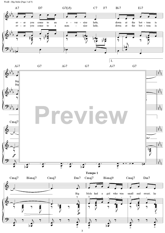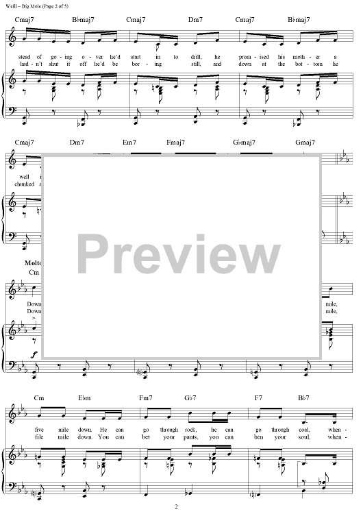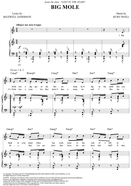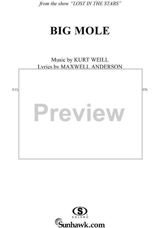 Digital Sheet Music for Big Mole by Maxwell Anderson, Kurt Weill scored for Piano/Vocal/Chords; id:263695