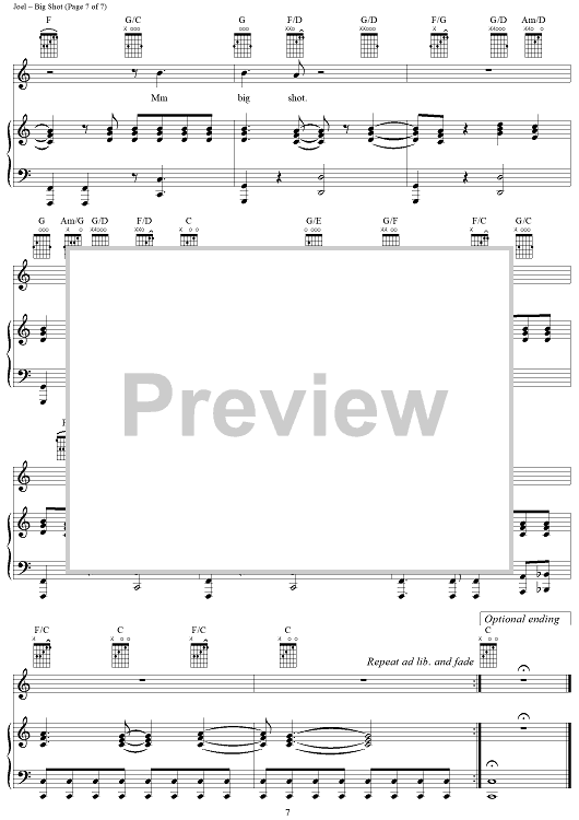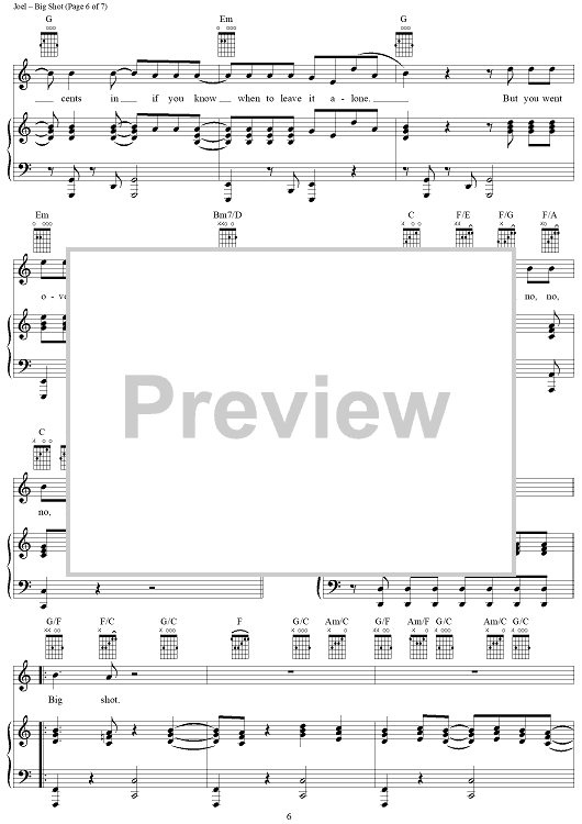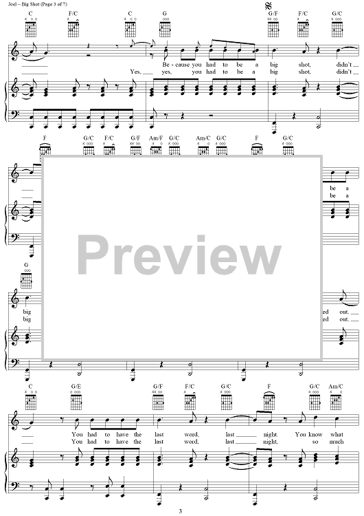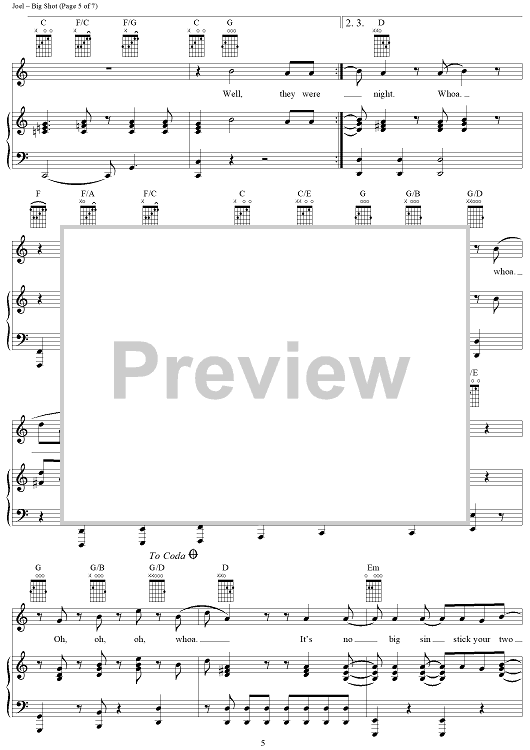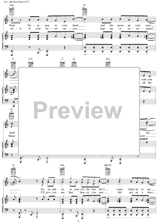 Digital Sheet Music for Big Shot by Billy Joel scored for Piano/Vocal/Chords; id:403191
