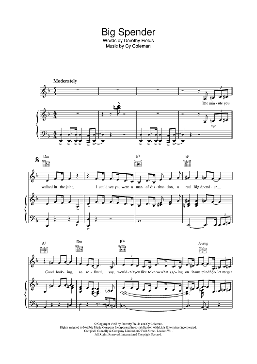 Digital Sheet Music for Big Spender by Cy Coleman, Dorothy Fields, M People scored for Piano/Vocal/Chords; id:378939