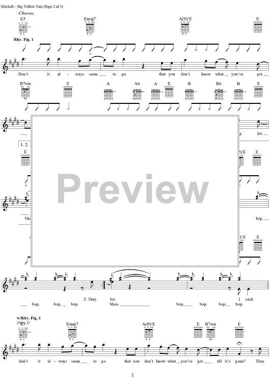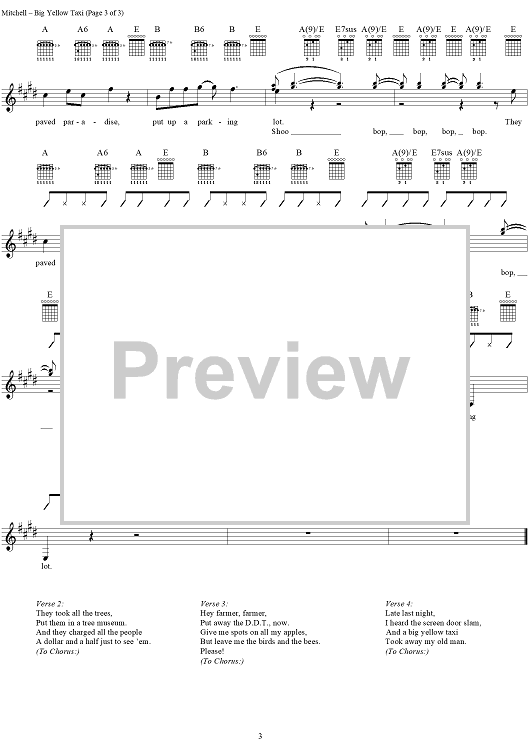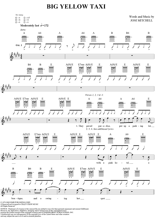 "Big Yellow Taxi" Sheet Music by Joni Mitchell