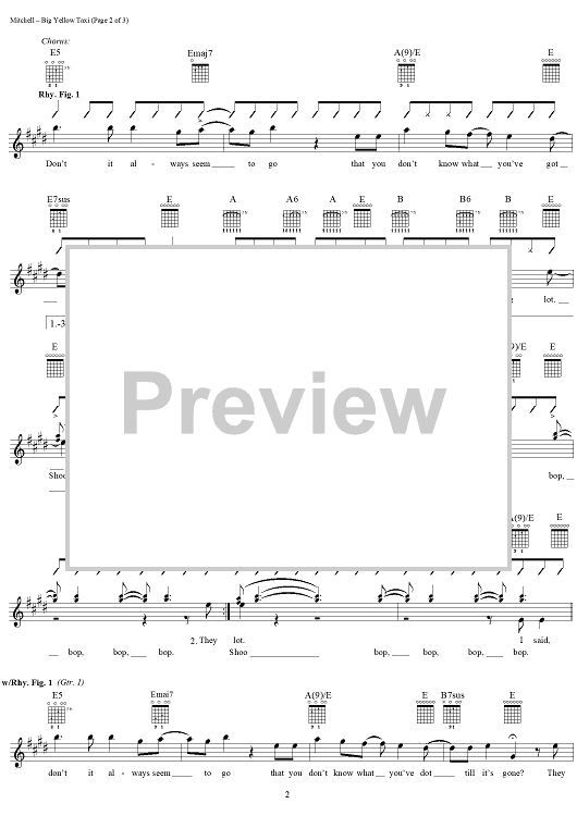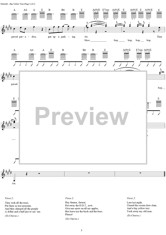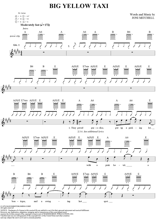 "Big Yellow Taxi" Sheet Music by Joni Mitchell
