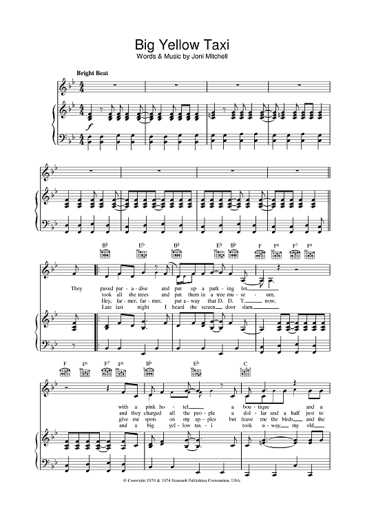 "Big Yellow Taxi" Sheet Music by Joni Mitchell