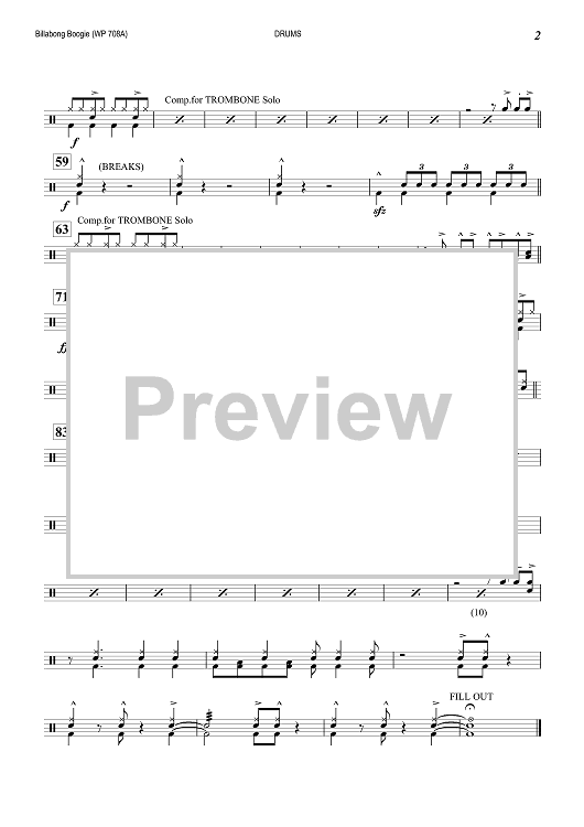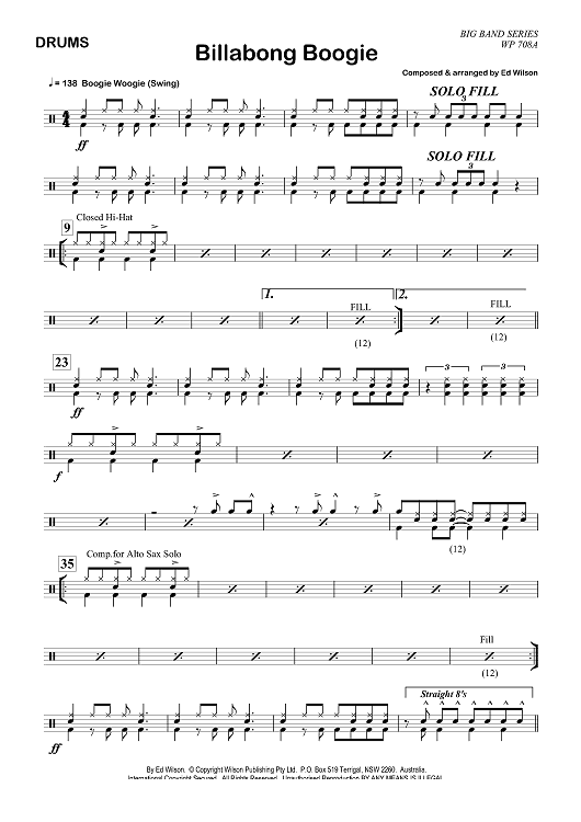 "Billabong Boogie - Drums" Sheet Music by Ed Wilson