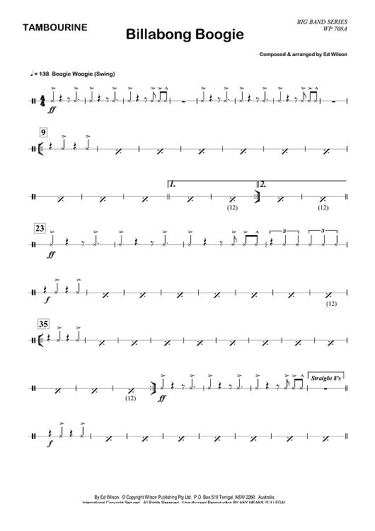 "Billabong Boogie - Tambourine" Sheet Music by Ed Wilson