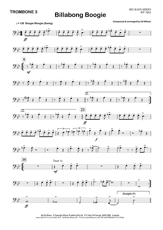 "Billabong Boogie - Trombone 3" Sheet Music by Ed Wilson