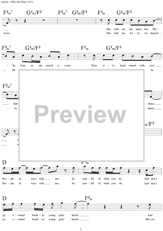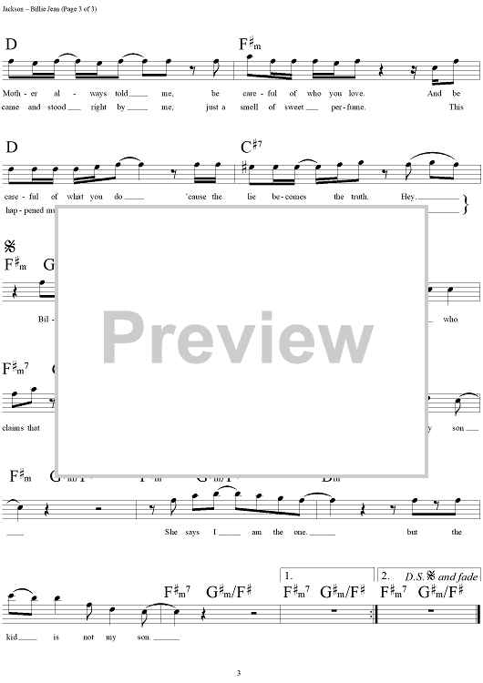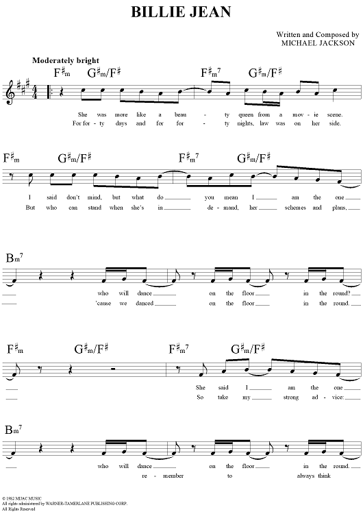 Digital Sheet Music for Billie Jean by Michael Jackson scored for Lead Sheet; id:112114