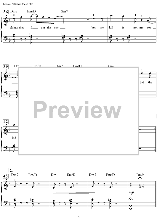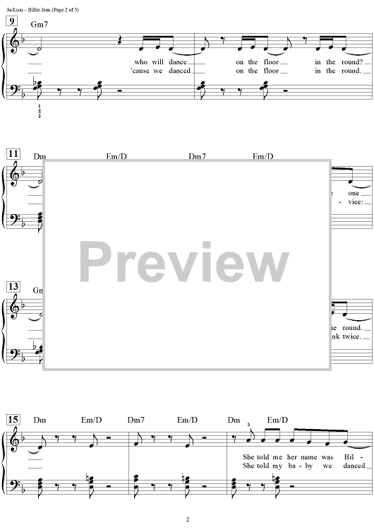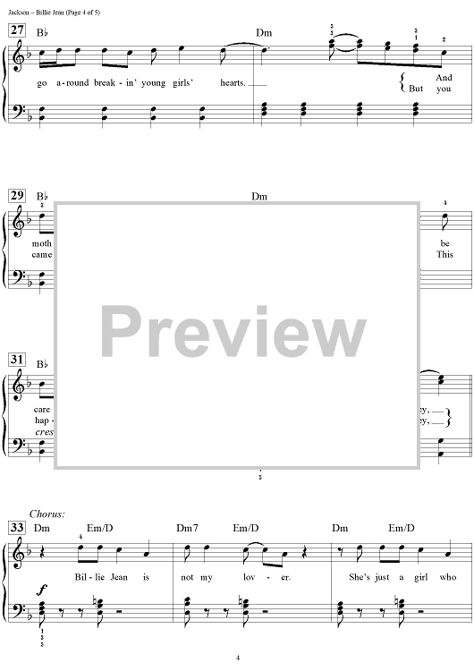 Digital Sheet Music for Billie Jean by Dan Coates, Michael Jackson scored for Easy Piano/Vocal/Chords; id:453474