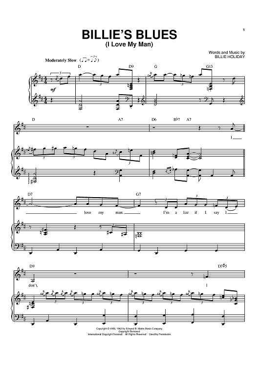 "Billie's Blues (I Love My Man)" Sheet Music by Billie Holiday