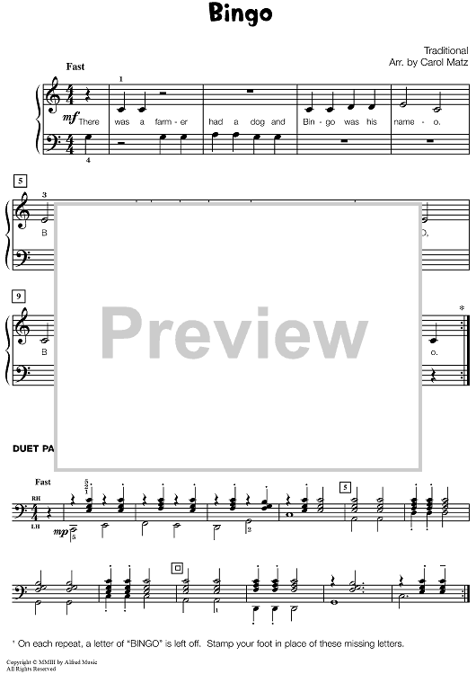 Digital Sheet Music for Bingo by Carol Matz, Traditional scored for Piano; id:497443