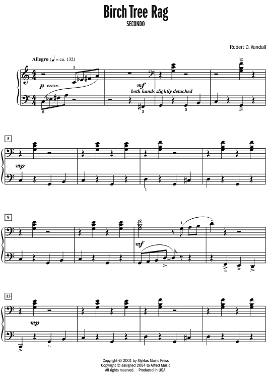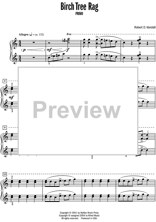 "Birch Tree Rag" Sheet Music by Robert D. Vandall
