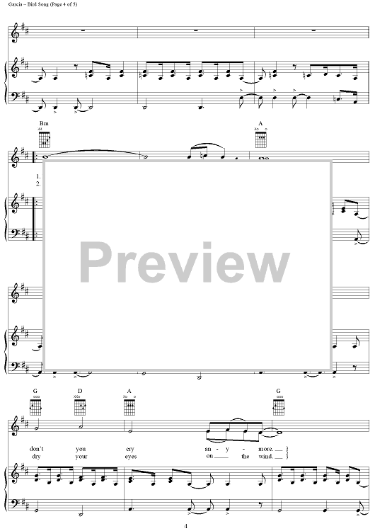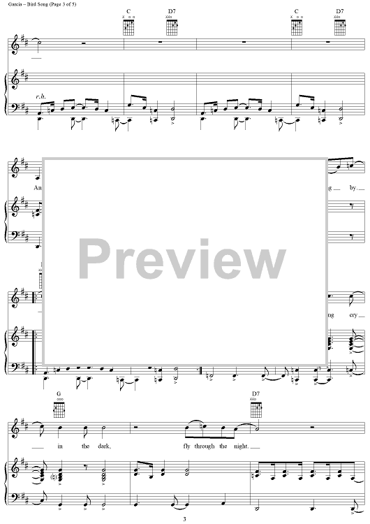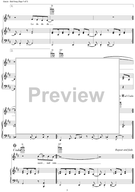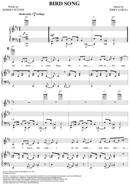 Digital Sheet Music for Bird Song by Jerry Garcia, Robert Hunter, Grateful Dead scored for Piano/Vocal/Chords; id:268922