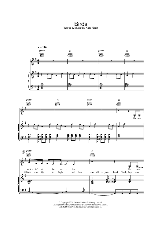 Digital Sheet Music for Birds by Kate Nash scored for Piano/Vocal/Chords; id:401919