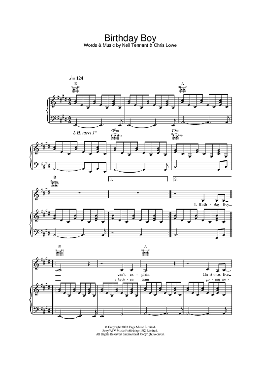 Digital Sheet Music for Birthday Boy by The Pet Shop Boys scored for Piano/Vocal/Chords; id:378201