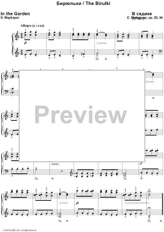 "Birulki. 1. In the Garden (C Major / C-dur)" Sheet Music by Samuel Maykapar