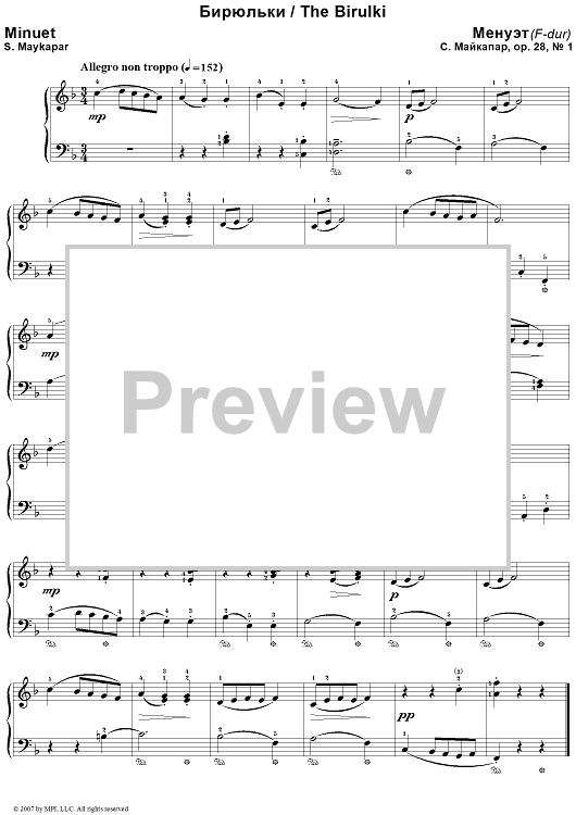 "Birulki. 11. Minuet (F Major / F-dur)" Sheet Music by Samuel Maykapar