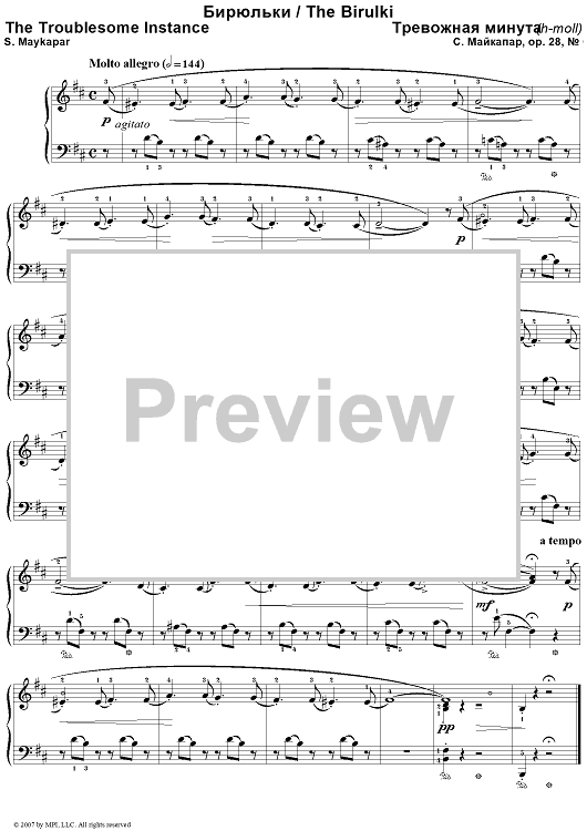 "Birulki. 6. The Troublesome Instance (B Minor / h-moll)" Sheet Music by Samuel Maykapar