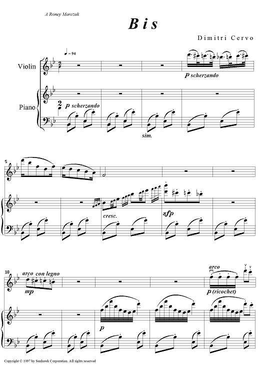 Digital Sheet Music for Bis - Piano Score by Dimitri Cervo scored for Violin/Piano; id:94706