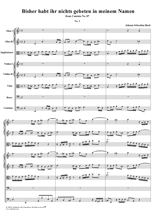 Digital Sheet Music for Bisher habt ihr nichts gebeten in meinem Namen - No. 1 from Cantata no. 87, BWV87 by Johann Sebastian Bach scored for Full Score; id:253436