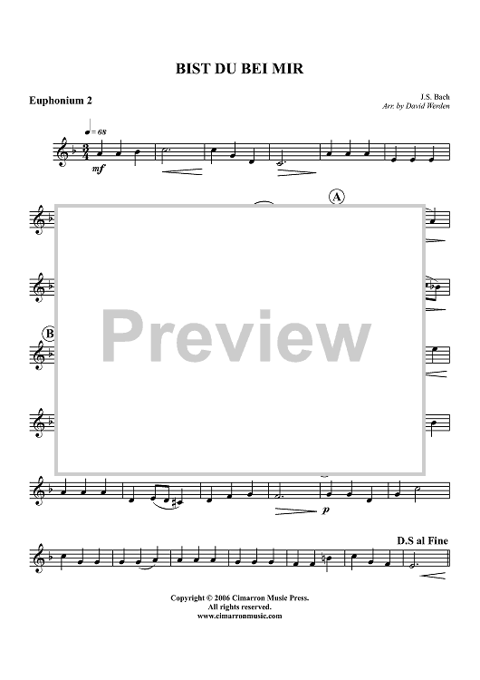 "Bist Du Bei Mir - Euphonium 2 BC/TC" Sheet Music by Johann Sebastian Bach