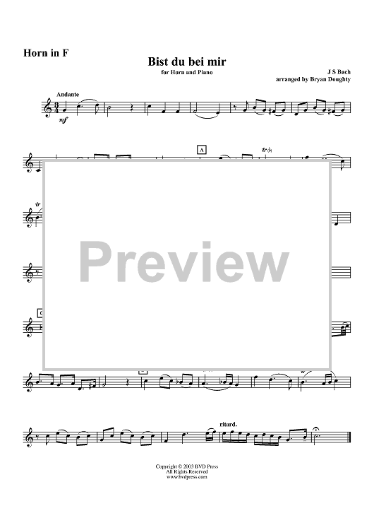 Digital Sheet Music for Bist du bei mir - Horn by Bryan Doughty, Johann Sebastian Bach scored for Horn/Piano; id:315819