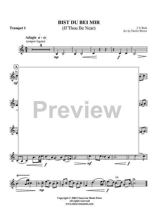 "Bist du bei Mir (If Thou Be Near) - Trumpet 1" Sheet Music by Johann Sebastian Bach