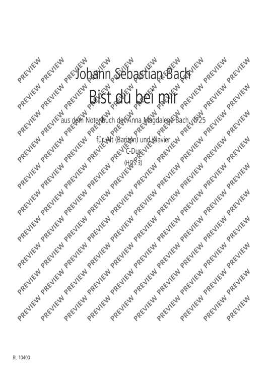 Digital Sheet Music for Bist du bei mir in C major by Johann Sebastian Bach, Johannes Doebber, Gottfried Heinrich Stoelzel scored for Alto (baritone) And Piano; id:498658