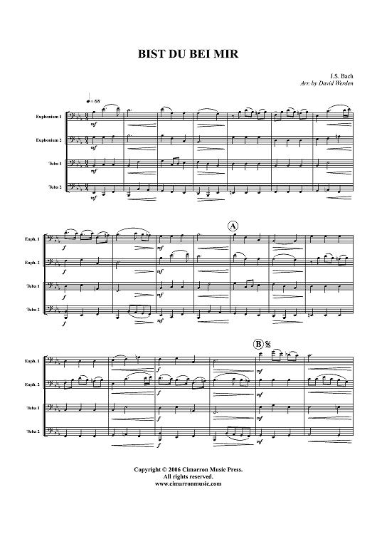 Digital Sheet Music for Bist Du Bei Mir - Score by David Werden, Johann Sebastian Bach scored for Tuba Quartet; id:357260