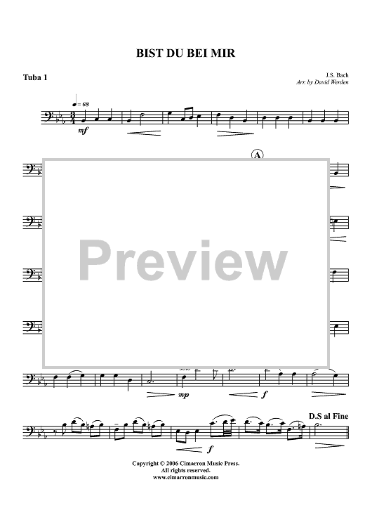 "Bist Du Bei Mir - Tuba 1" Sheet Music by Johann Sebastian Bach