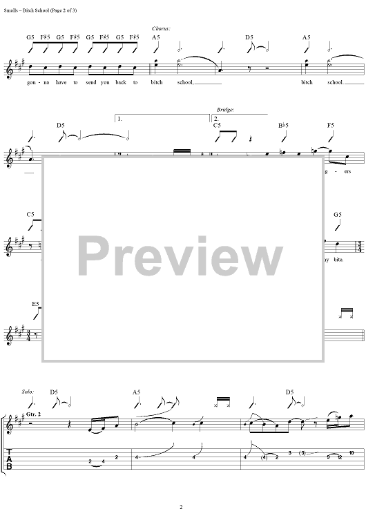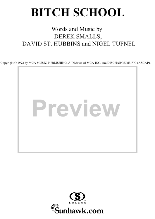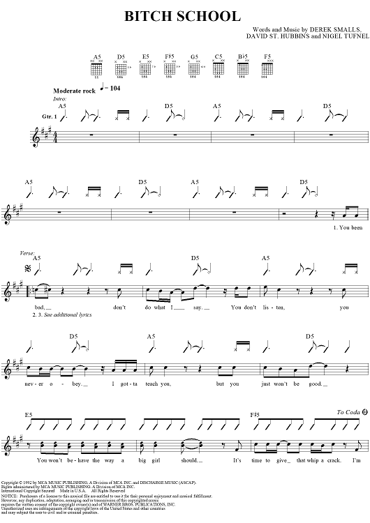 Digital Sheet Music for Bitch School by Spinal Tap, Nigel Tufnel, David St. Hubbins, Derek Smalls scored for Guitar Tab/Vocal; id:114040