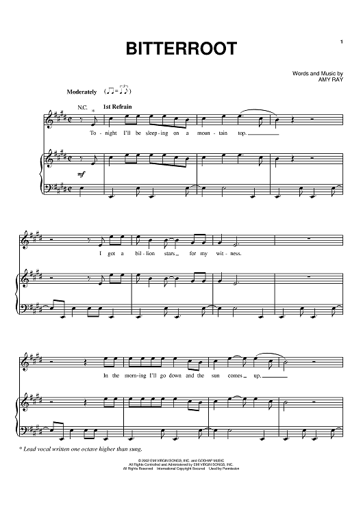 Digital Sheet Music for Bitterroot by Indigo Girls, Amy Ray scored for Piano/Vocal/Chords; id:370376