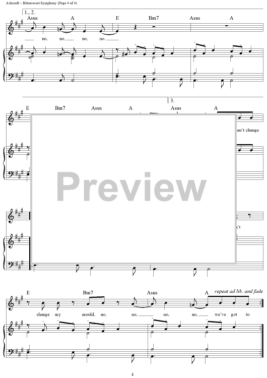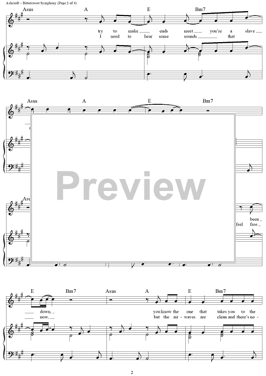 Digital Sheet Music for Bittersweet Symphony by Keith Richards, Mick Jagger, Richard Ashcroft, The Verve scored for Piano/Vocal/Chords; id:430125