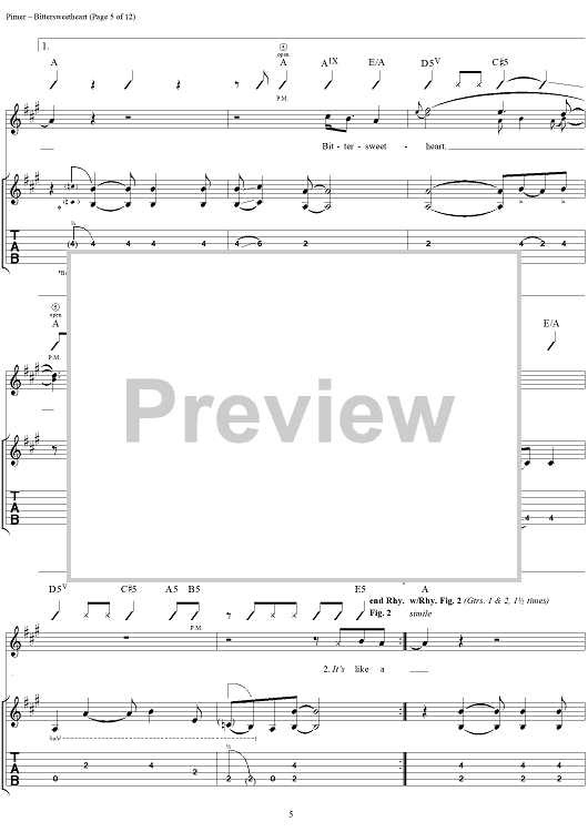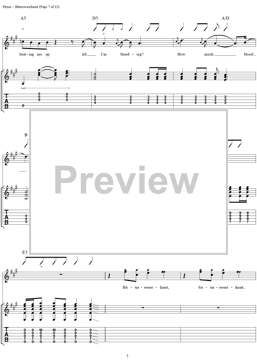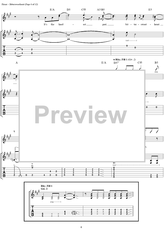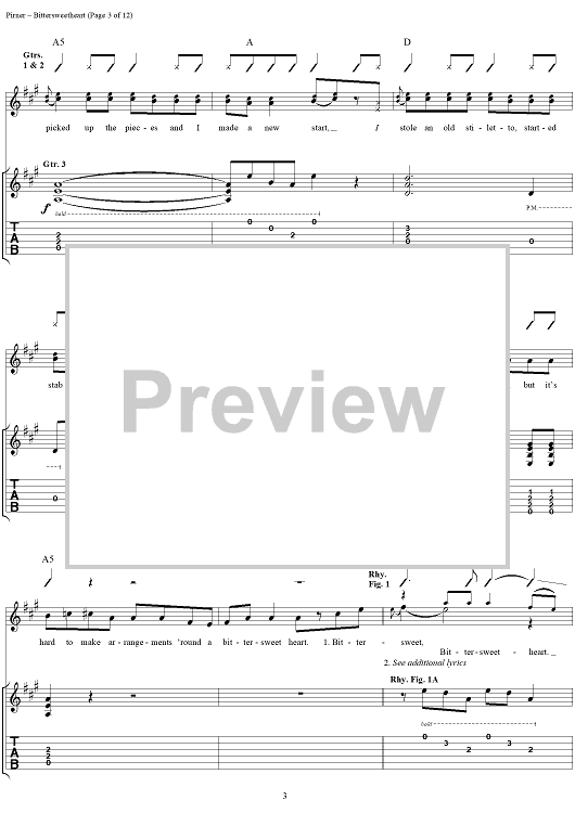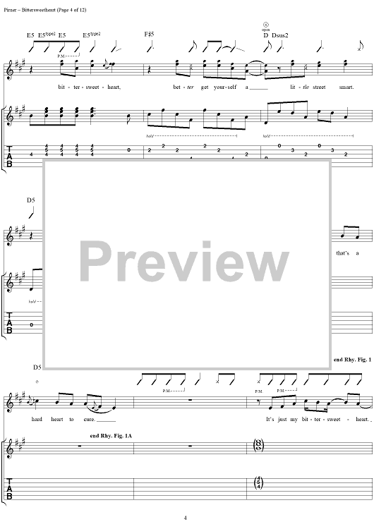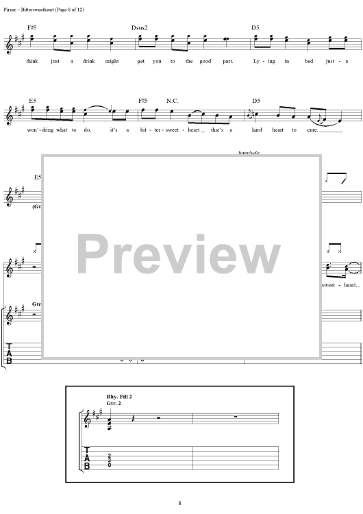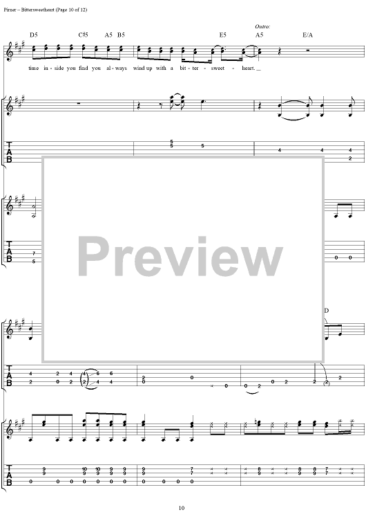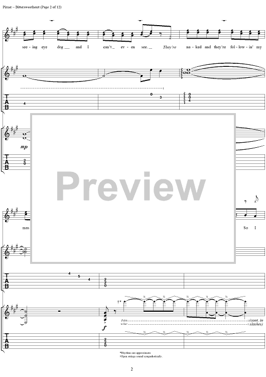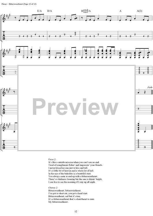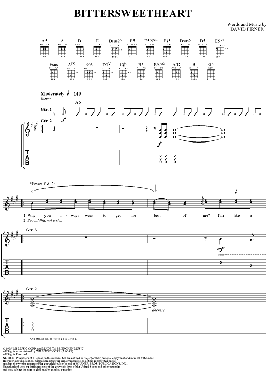 Digital Sheet Music for Bittersweetheart by David Pirner, Soul Asylum scored for Guitar Tab/Vocal; id:154958