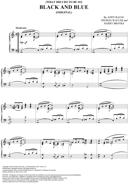"Black and Blue (Original)" Sheet Music by Fats Waller