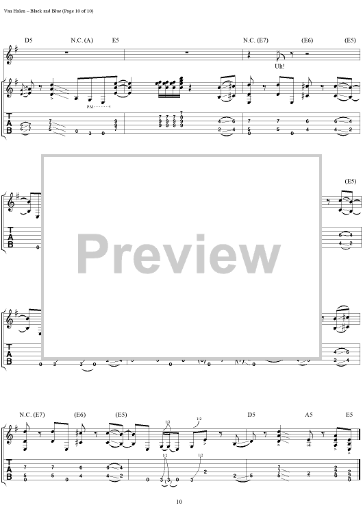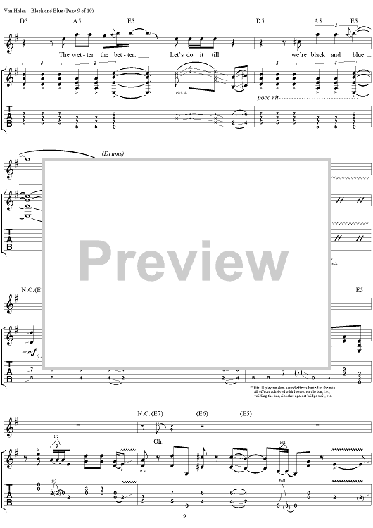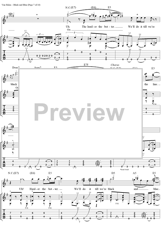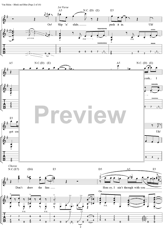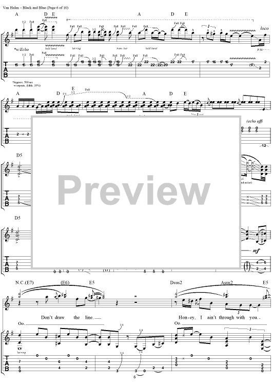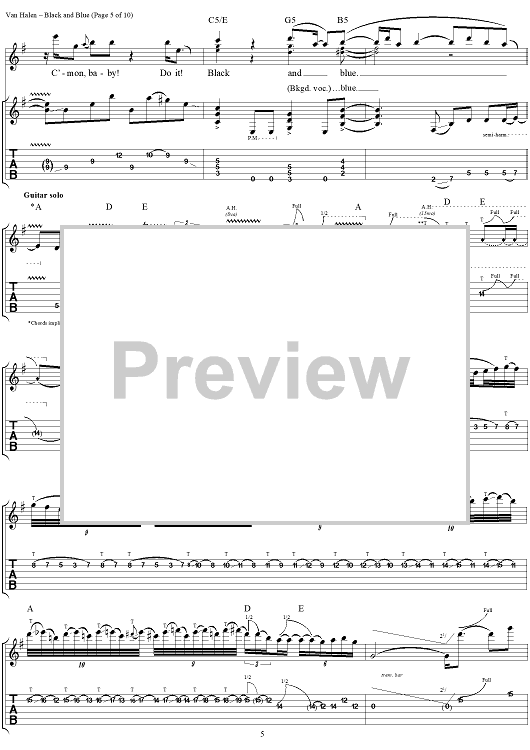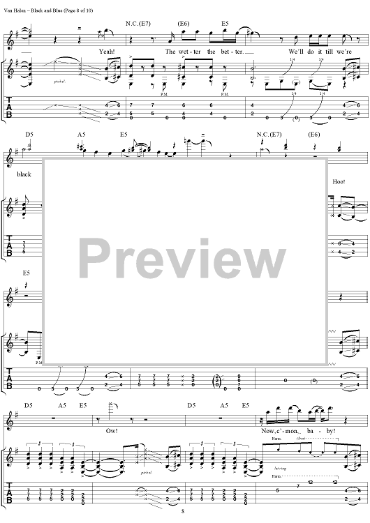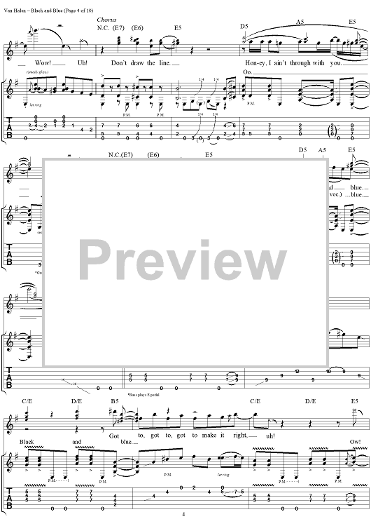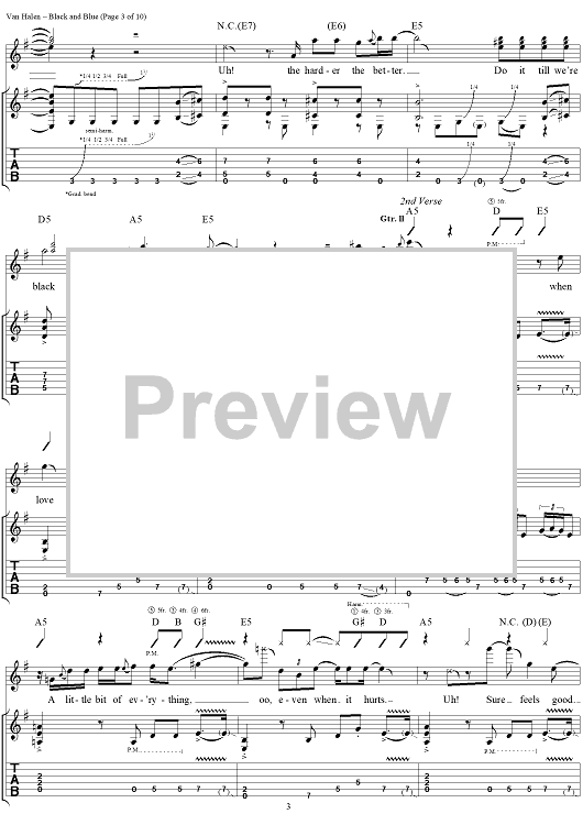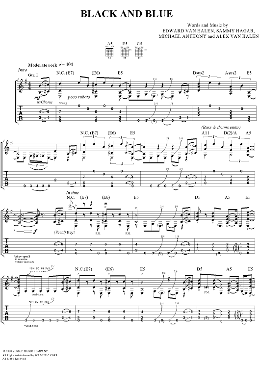 Digital Sheet Music for Black and Blue by Eddie Van Halen, Sammy Hagar, Michael Anthony, Alex Van Halen, Van Halen scored for Guitar Tab/Vocal; id:113402