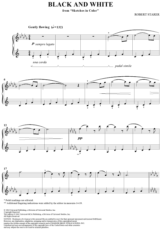 Digital Sheet Music for Black and White by Robert Starer scored for Piano Solo; id:285862