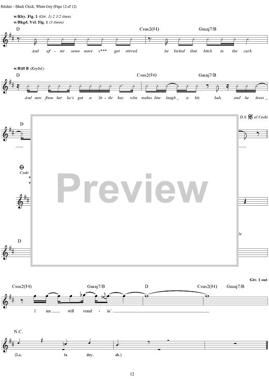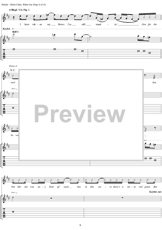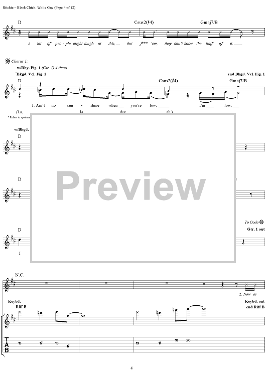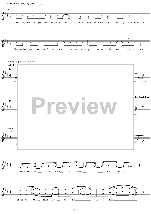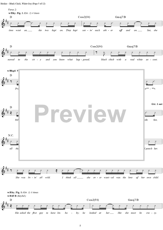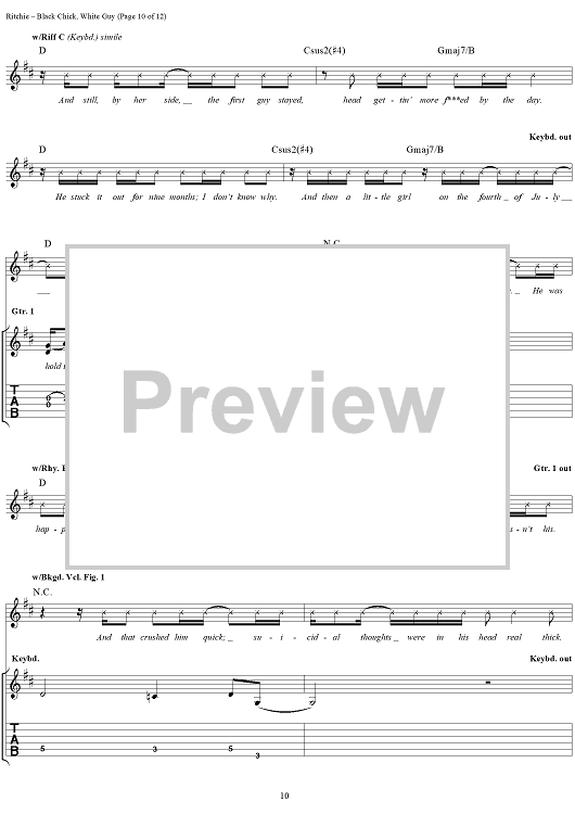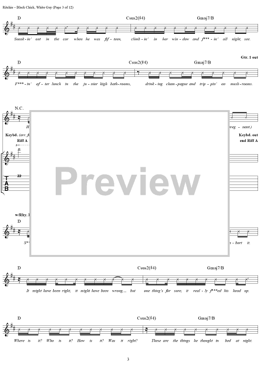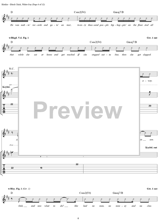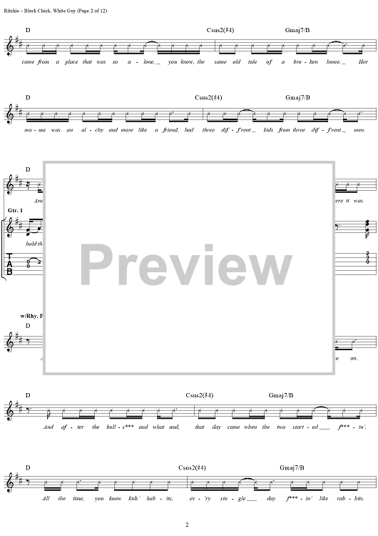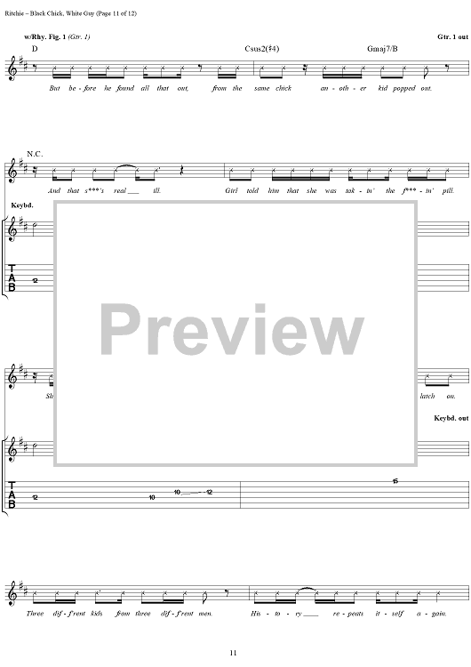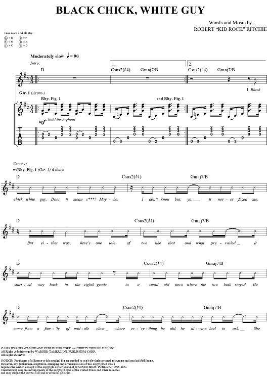 Digital Sheet Music for Black Chick, White Guy by Kid Rock scored for Guitar Tab/Vocal; id:191423