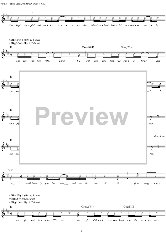 "Black Chick, White Guy" Sheet Music by Kid Rock