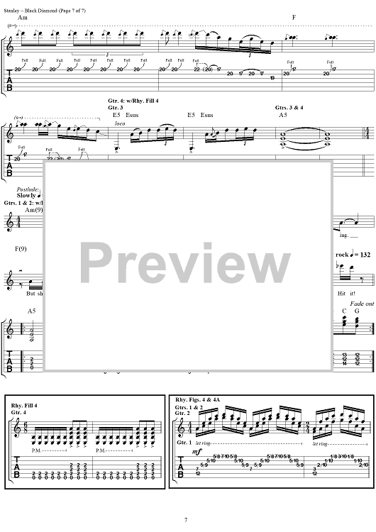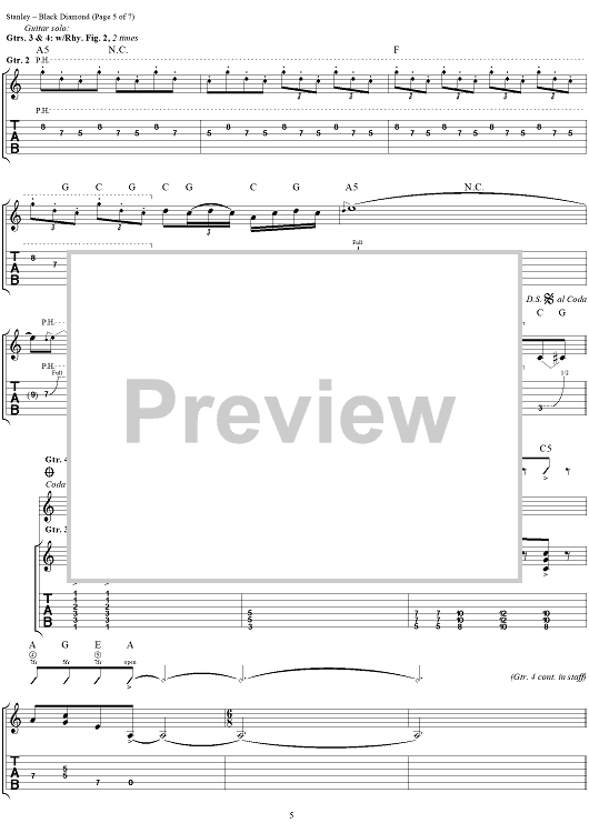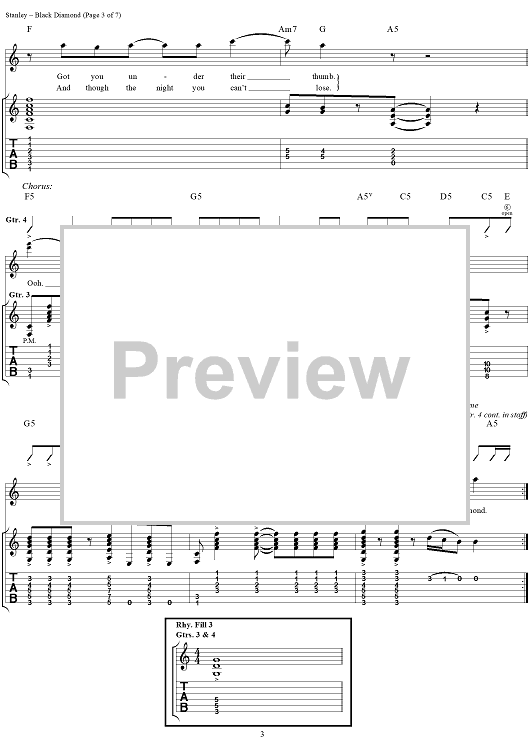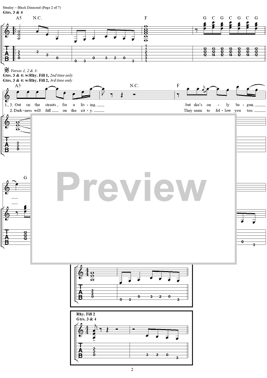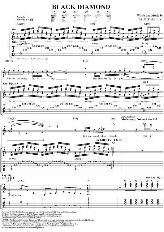 Digital Sheet Music for Black Diamond by Paul Stanley, KISS scored for Guitar Tab/Vocal; id:206155
