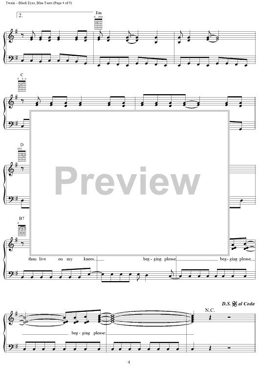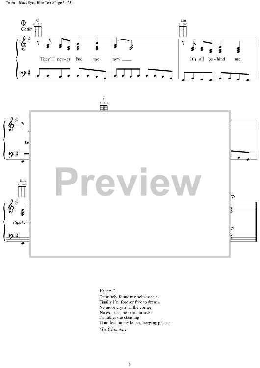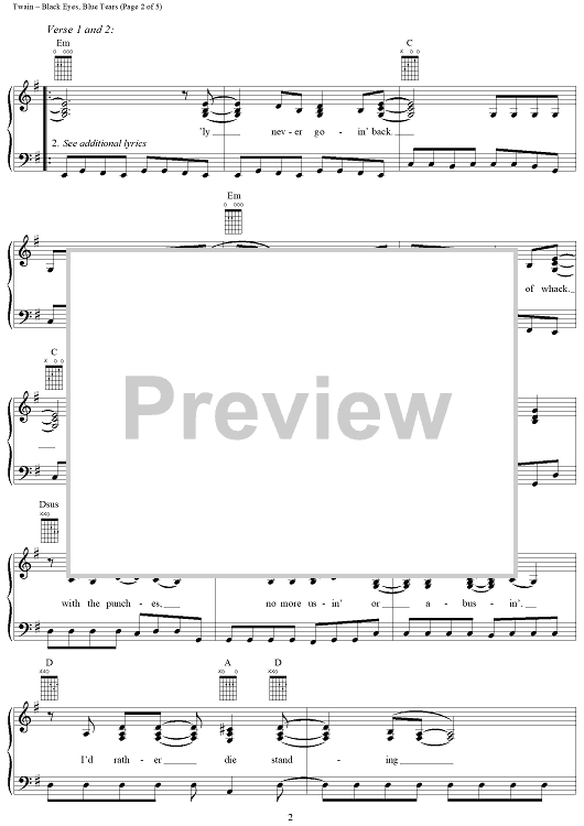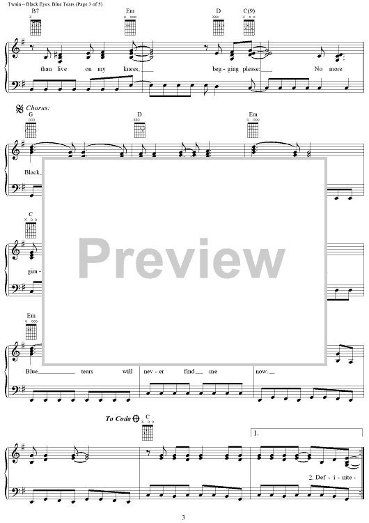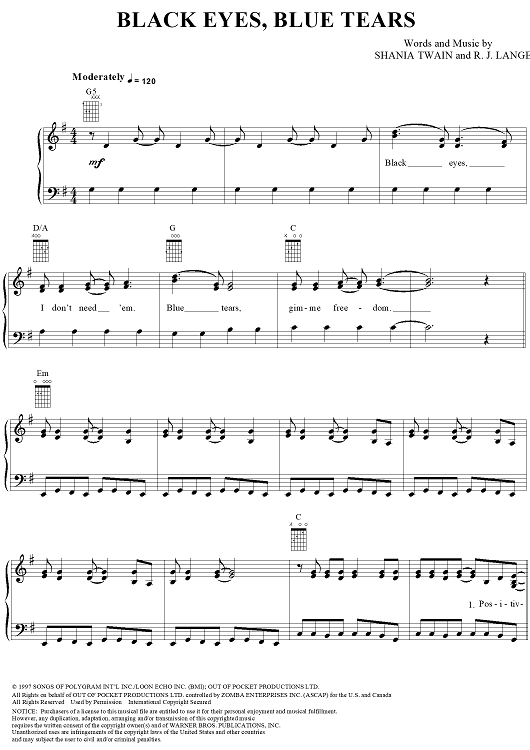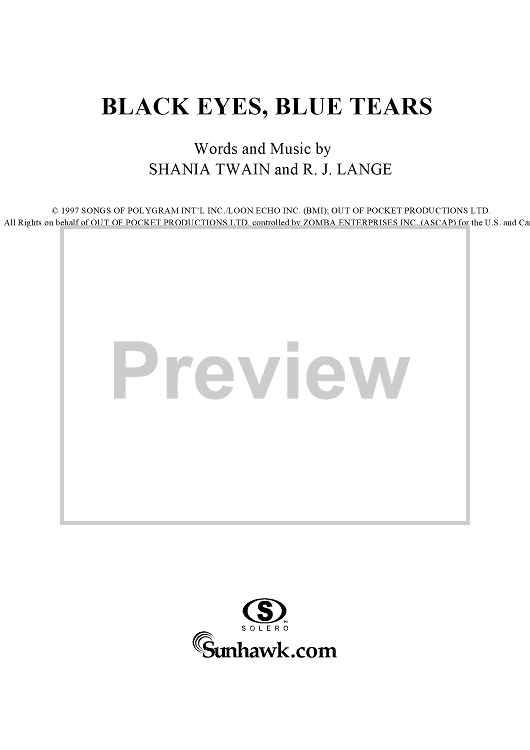 Digital Sheet Music for Black Eyes, Blue Tears by Shania Twain, Robert Lange scored for Piano/Vocal/Chords; id:112488