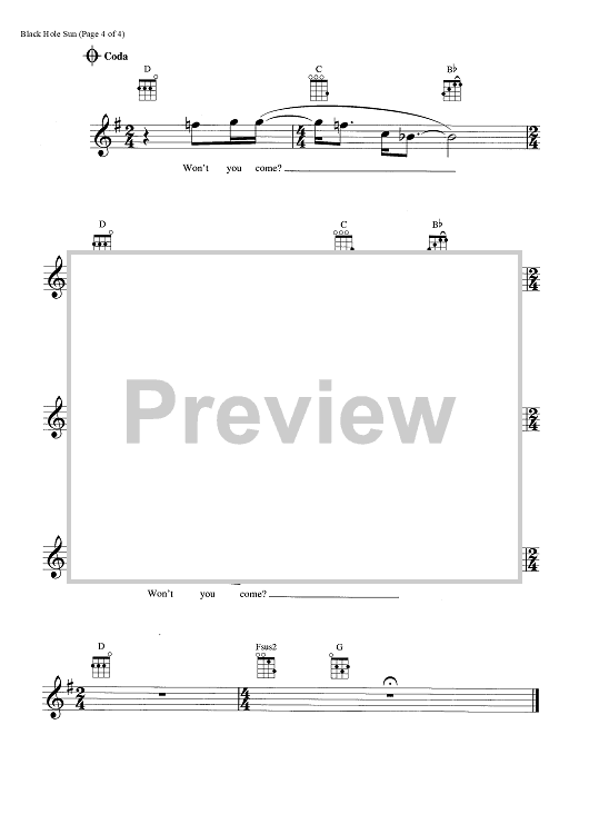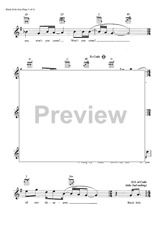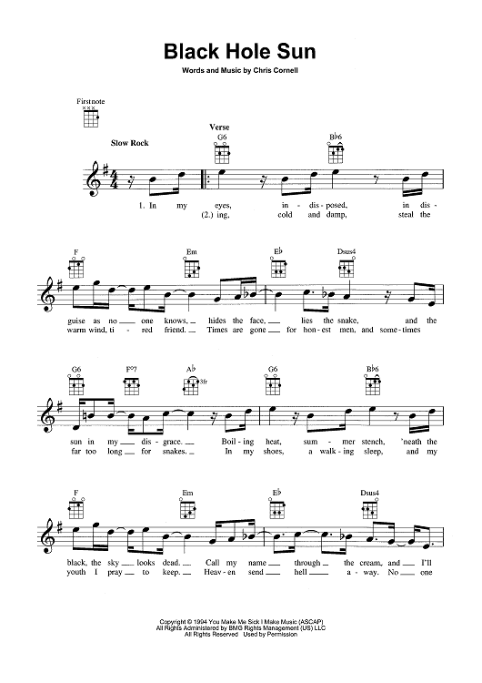 Digital Sheet Music for Black Hole Sun by Chris Cornell scored for Ukulele/Vocal; id:465472