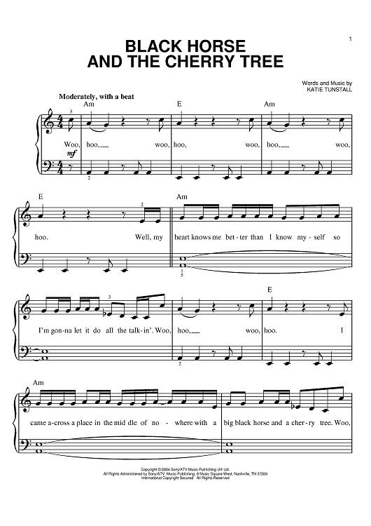 Digital Sheet Music for Black Horse And The Cherry Tree by Katie Tunstall, KT Tunstall scored for Easy Piano; id:391903